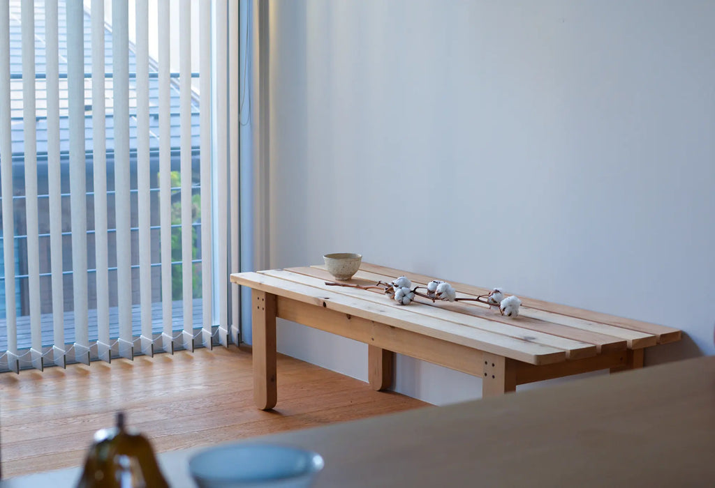 リビング・ダイニングのベンチ、あるいはお気に入りのクッションを載せてベンチソファのように使うことも可能です。
