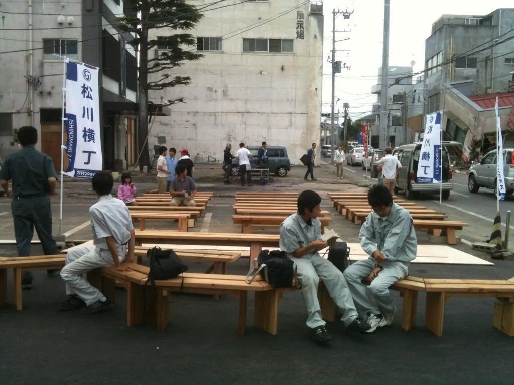 2011年、市民の野外映画館のベンチとしてデザインされ、石巻工房のワークショップで石巻工業高校の生徒らとともに制作したものです。